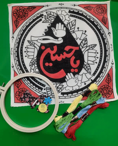 موقع طراحیش فکر میکردم بچه های عراقی هم دوست دارند خودشون پرچمی از امام حسین (ع)را گلدوزی کنند و داخل موکب هاشون نصب کنند؟؟یا شاید دست دوز یک بچه ایرانی بشه هدیه به ی موکبی که استراحت میکنیم یا خانه ای که مهمونشون میشیم برای تلافی ذره ای از میزبانیشون باشه…ی یادگاری و هدیه ای فراموش نشدنی