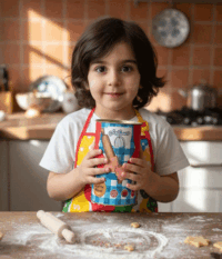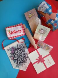 شامل:(پیشبند کلاه،کاتر،وردنه ،آرد ،پودر شکر،وانیل،ترافل)